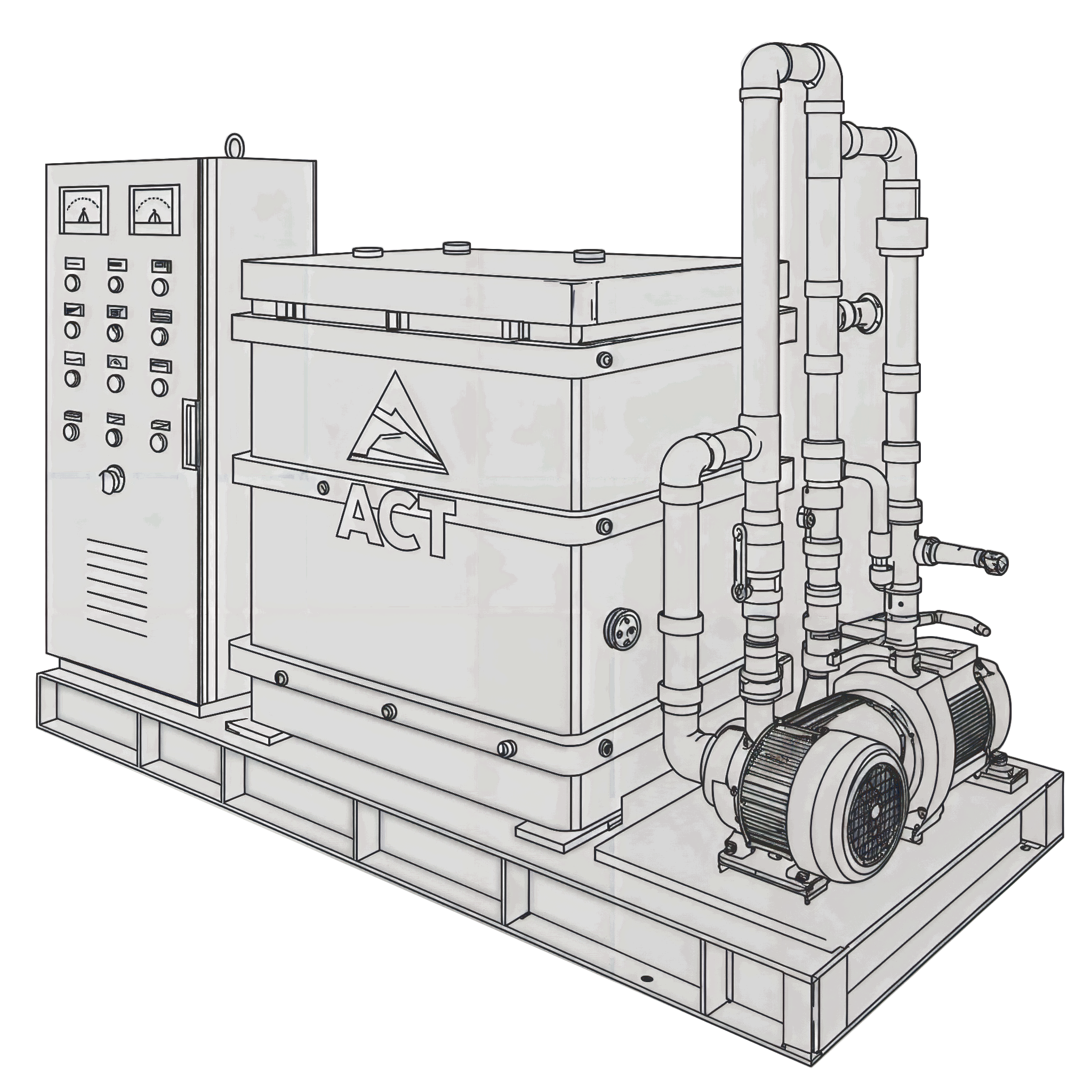 ACT’s Hydrogen Production Unit (HPU) utilizes a novel and internationally patented technology that applies a phase-shifted plasma electrolysis method to produce hydrogen and oxygen at atmospheric pressure from a potassium hydroxide solution of deionized water.